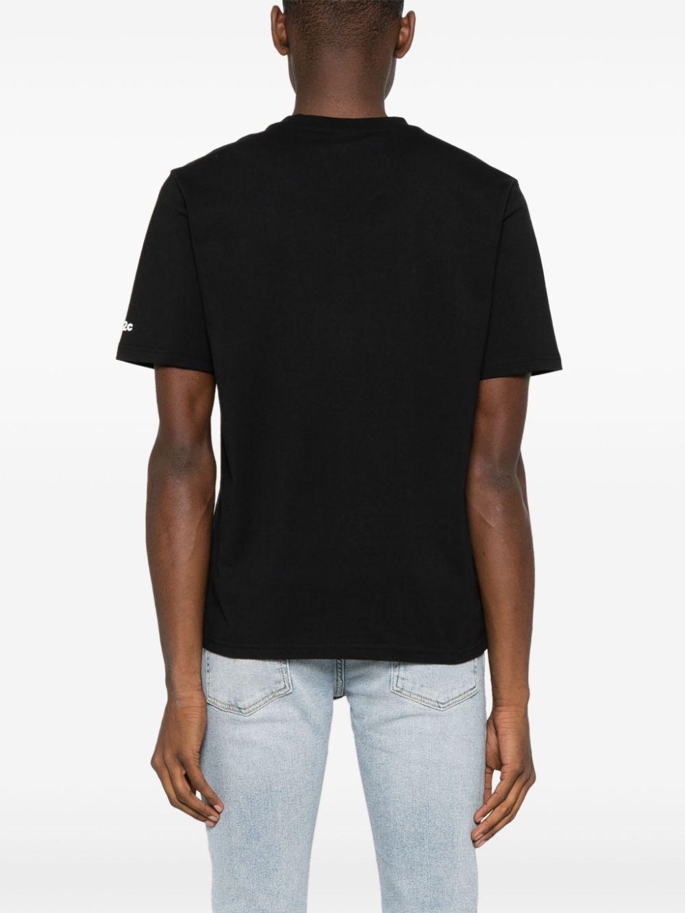 logo-print organic-cotton T-Shirt from 032c featuring black, organic cotton, logo print to the front, crew neck, short sleeves and straight hem. POSITIVELY CONSCIOUS: This Planet Conscious product is made from at least 50% organic materials, which helps you support organic farming practices such as the restricted use of synthetic chemicals and genetically modified seeds, improved soil fertility and better livestock management..