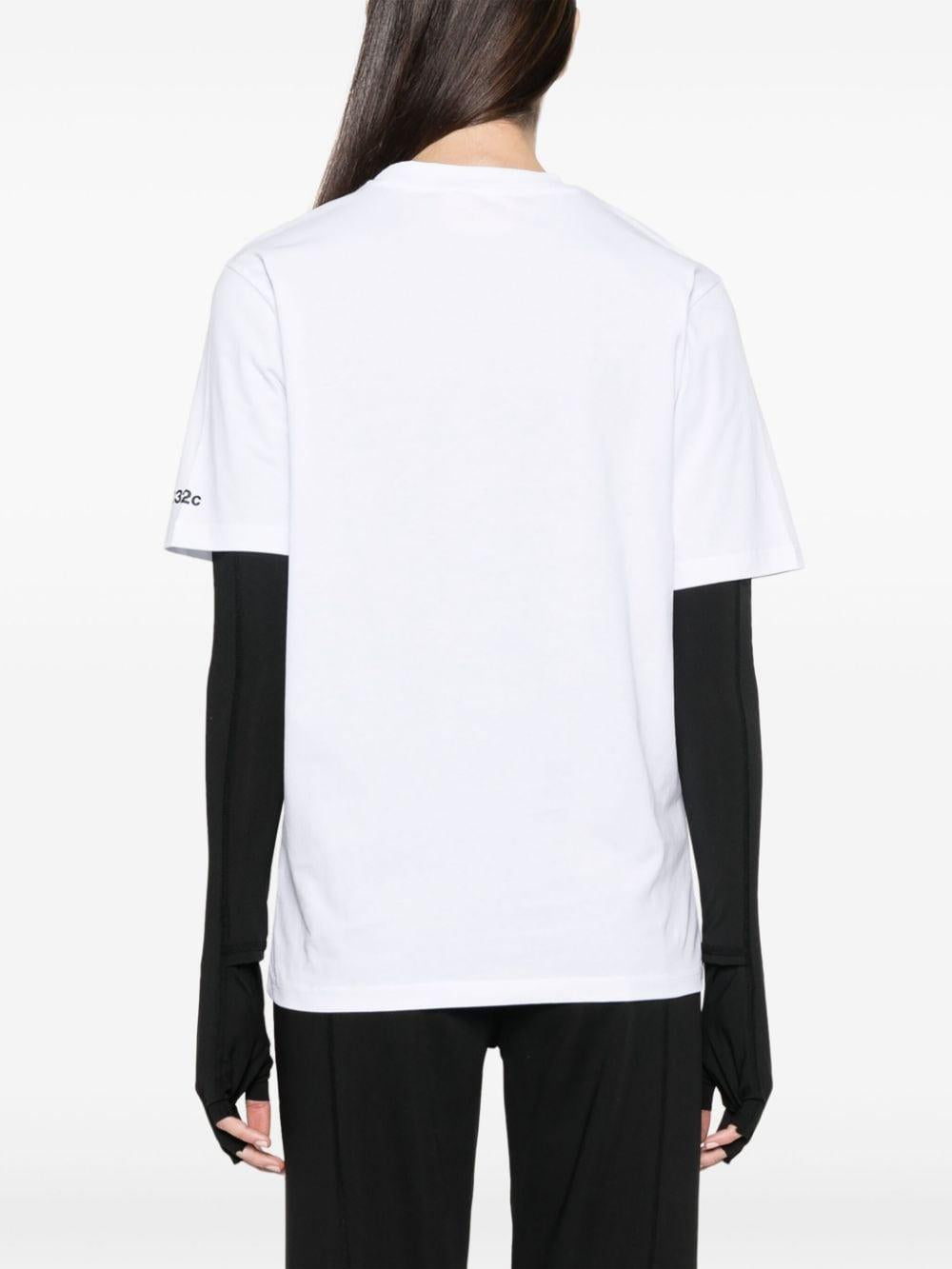 logo-print organic cotton T-shirt from 032c featuring optical white, organic cotton, logo print at the sleeve, crew neck, short sleeves and straight hem. This item is made from at least 50% organic materials.. Learn more about what makes a product Conscious on our Conscious Criteria page.
