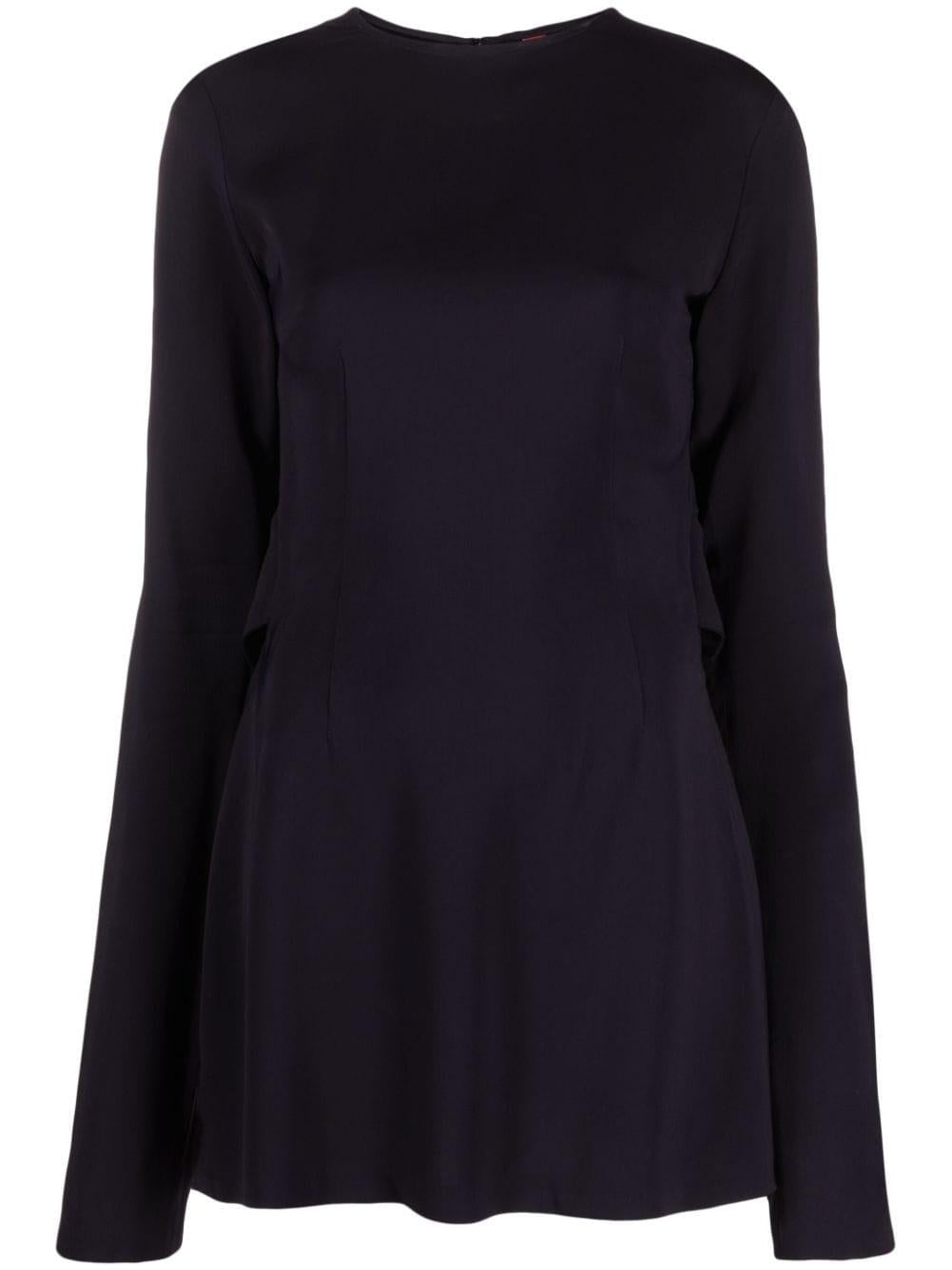 'Kicked Back' structured short dress from 032c featuring black, round neck, rear zip fastening, cut-out detailing, long sleeves and straight hem.